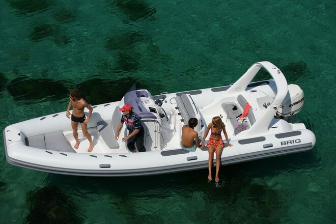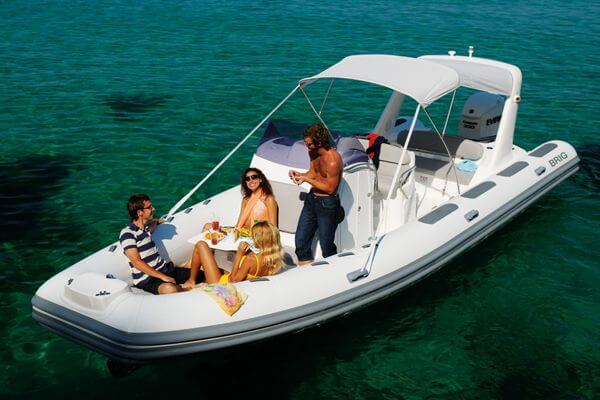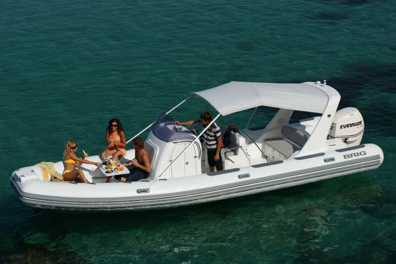 Our Brig range provide passengers with comfort and speed, ideal for island hopping. The Brig 780, the biggest of our Brig range, is suitable for up to 10 guests and a skipper due to its clever seating arrangements. Ideal for small groups.