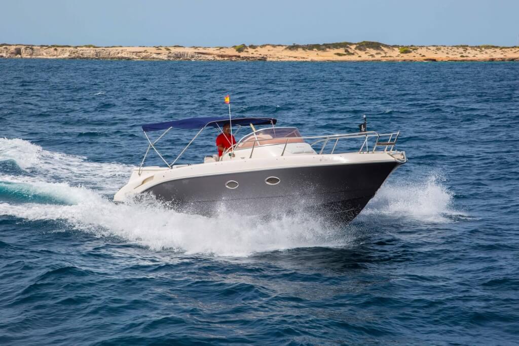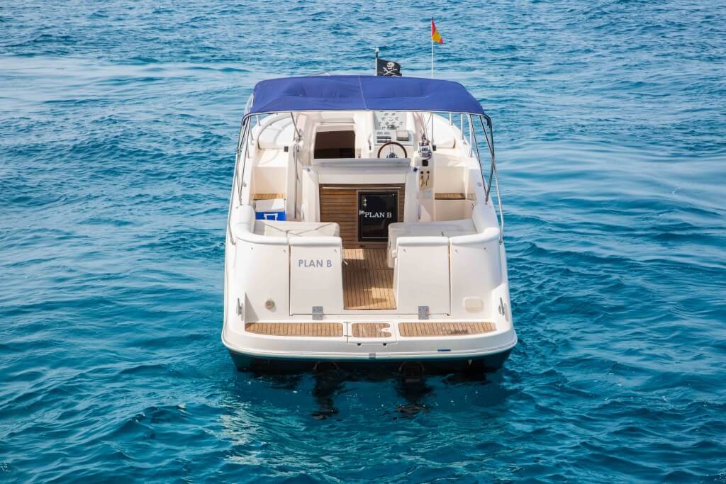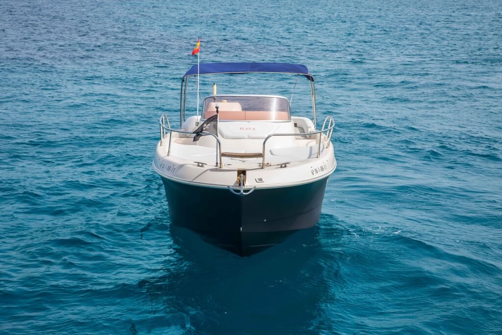 Not your standard looking boat. The Mano Marine's unusual seating arrangement provides a great entertaining space at the rear whilst maintaining plenty of space up front. Comfortable and stylish for small groups who wish to spend the day relaxing in the sunshine with a complimentary glass of cava.