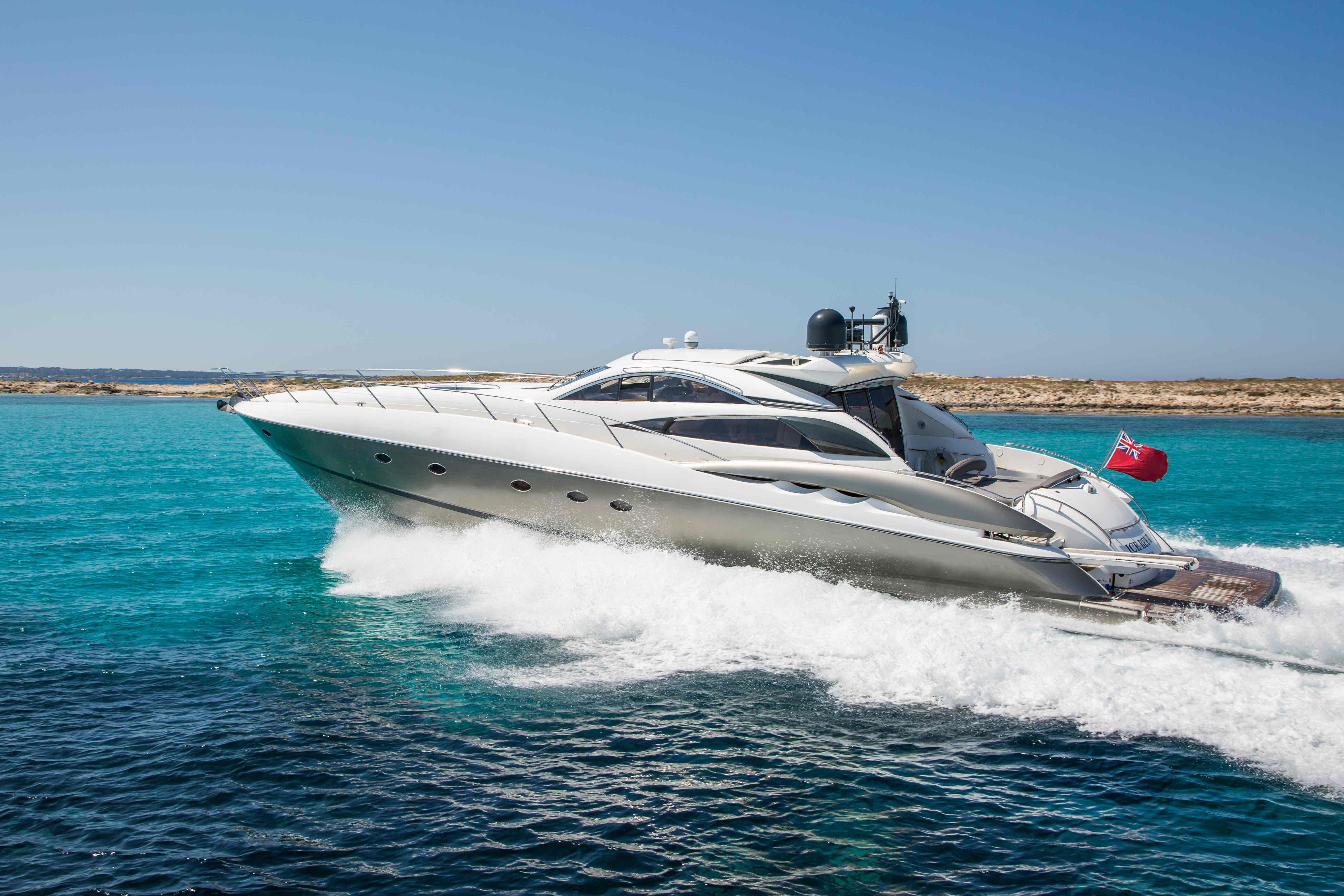 The Sunseeker Predator 75 is a picturesque yacht equipped with all the luxuries. Modern and specious inside and out she’s perfect for a day on the med and as overnight accommodation thanks to her three cabins, kitchen and internal dining area. Jet Ski not included, please ask for details.
