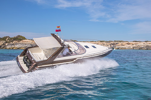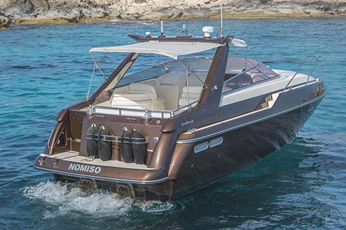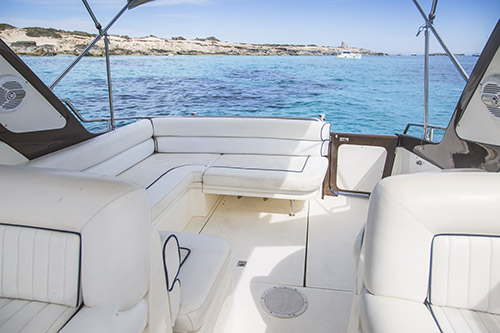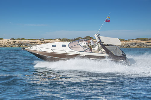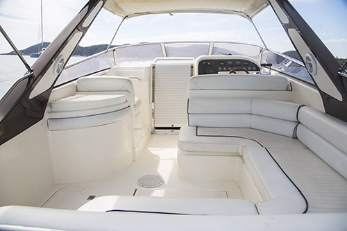 Sunseeker San Remo 35 is a great, compact day boat which maximises the space available with the guests in mind. She has plenty of seating to the rear with a sunbathing area and space below deck for all your belongings during transit.